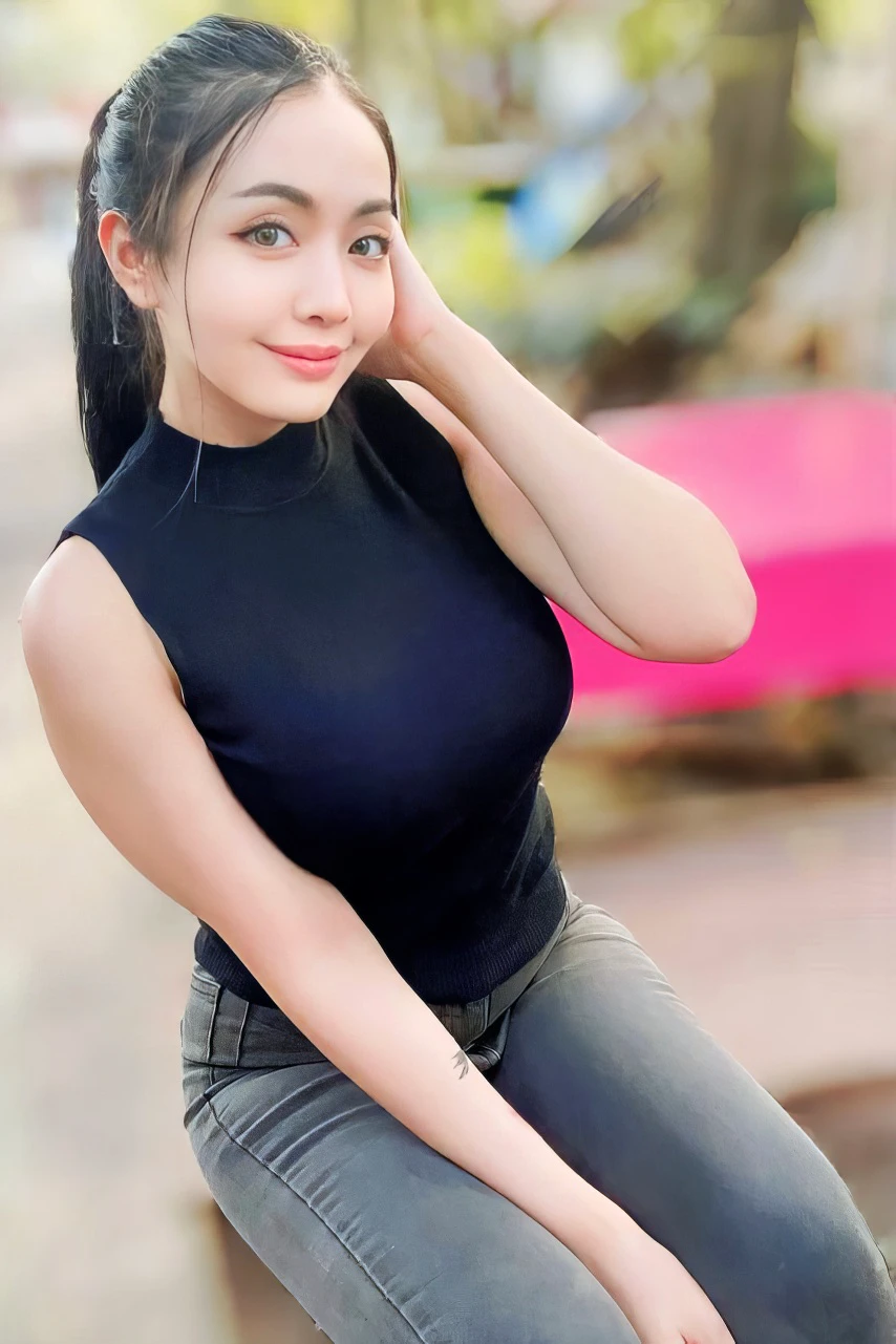 Sweet Asian Girl In Ripped Jeans
